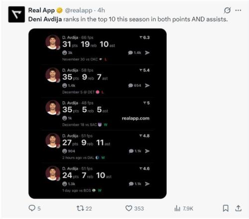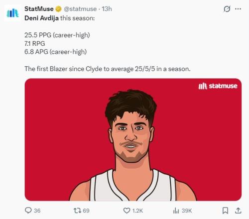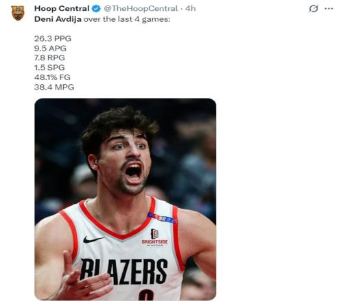 本赛季阿夫迪亚的得分、助攻都已经挤进联盟前十行列,开拓者以他为核心没有任何问题。