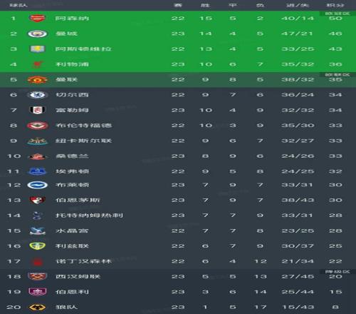 北京时间1月25日,英超第23轮率先结束了5场比赛,我们看看最新积分榜的变动!